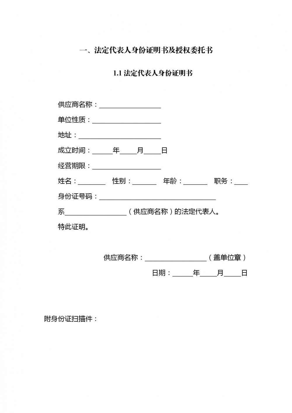 附件1:響應文件格式