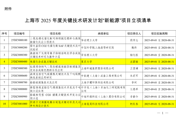 10個氫能相關,上海市2025年度關鍵技術研發計劃“新能源”項目立項