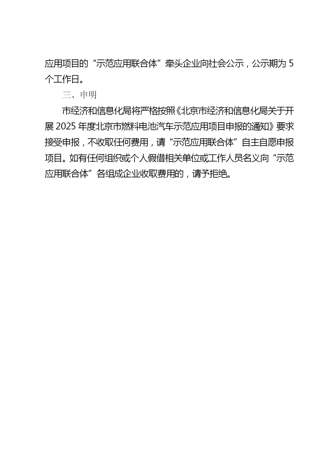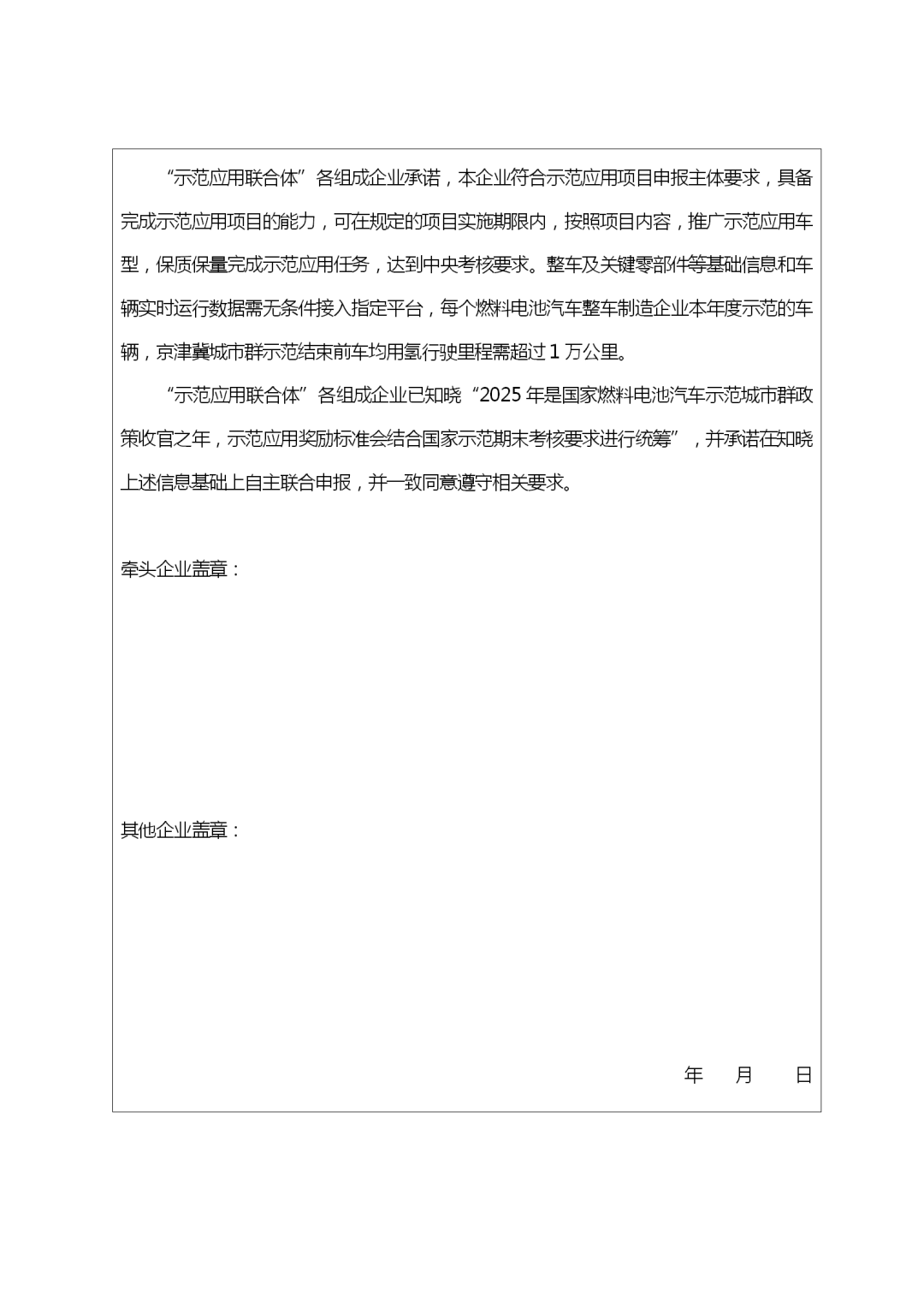2.“示范應(yīng)用聯(lián)合體”在對《2025年度北京市燃料電池汽車示范應(yīng)用項目申報表》中的“示范應(yīng)用聯(lián)合體承諾”達(dá)成一致意見后方可申報。