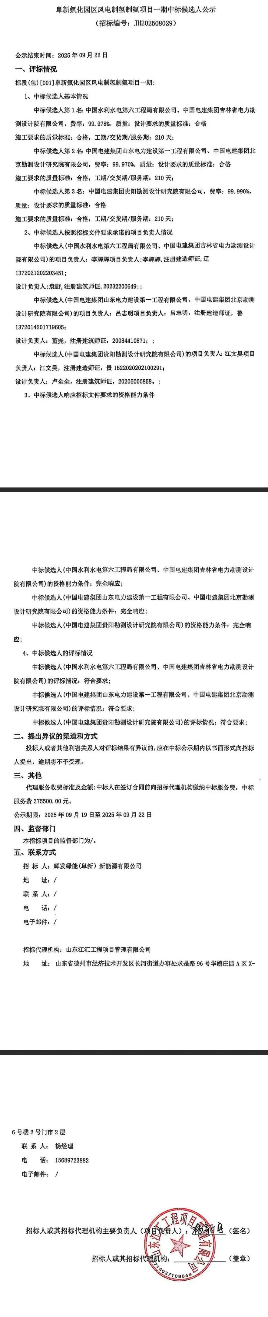9月19日,阜新氟化園區(qū)風(fēng)電制氫制氨項(xiàng)目一期中標(biāo)候選人公示。