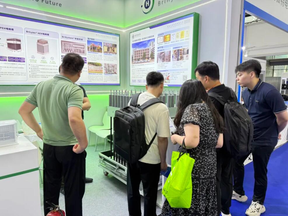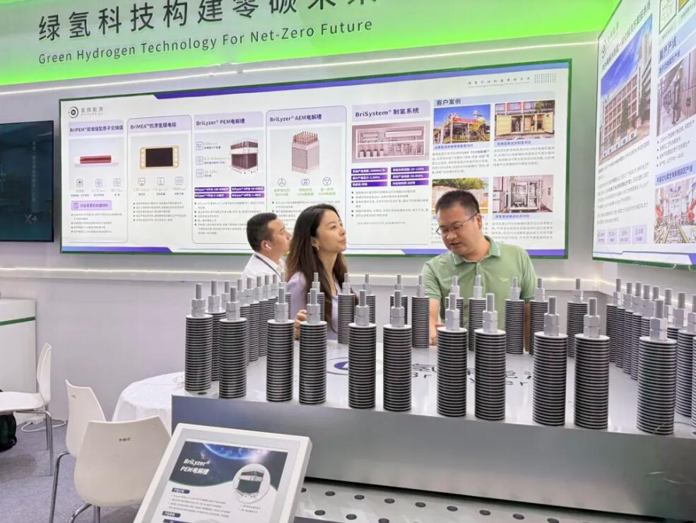 在展會現(xiàn)場,氫輝能源重點展示了BriPEM?雙增強型質(zhì)子交換膜、BriMEA?抗?jié)B氫膜電極、BriLyzer?PEM 電解槽、BriLyzer?AEM 電解槽等完整產(chǎn)品矩陣,吸引了大量觀眾駐足交流。這些產(chǎn)品不僅體現(xiàn)了國產(chǎn)化技術的持續(xù)突破,也彰顯了公司在核心材料自主可控和規(guī)模化應用方面的領先實力。