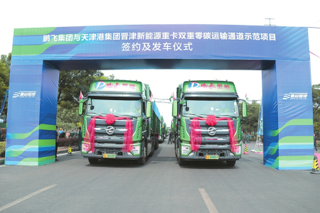 單程距離約760公里的呂梁至天津氫能重卡零碳干線運輸線路開通