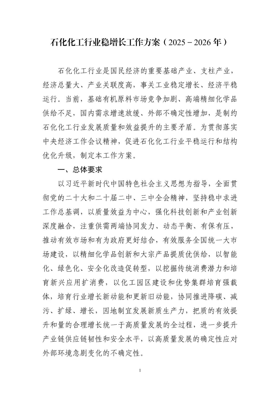 現將《石化化工行業穩增長工作方案(2025—2026年)》印發給你們,請結合實際認真抓好落實。