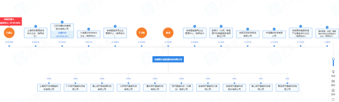 股東信息顯示,廣州明天氫能科技有限公司由安徽明天新能源科技有限公司100%控股。據了解,安徽明天新能源科技有限公司是國內燃料電池企業安徽明天氫能科技股份有限公司的大股東(持股94%)。
