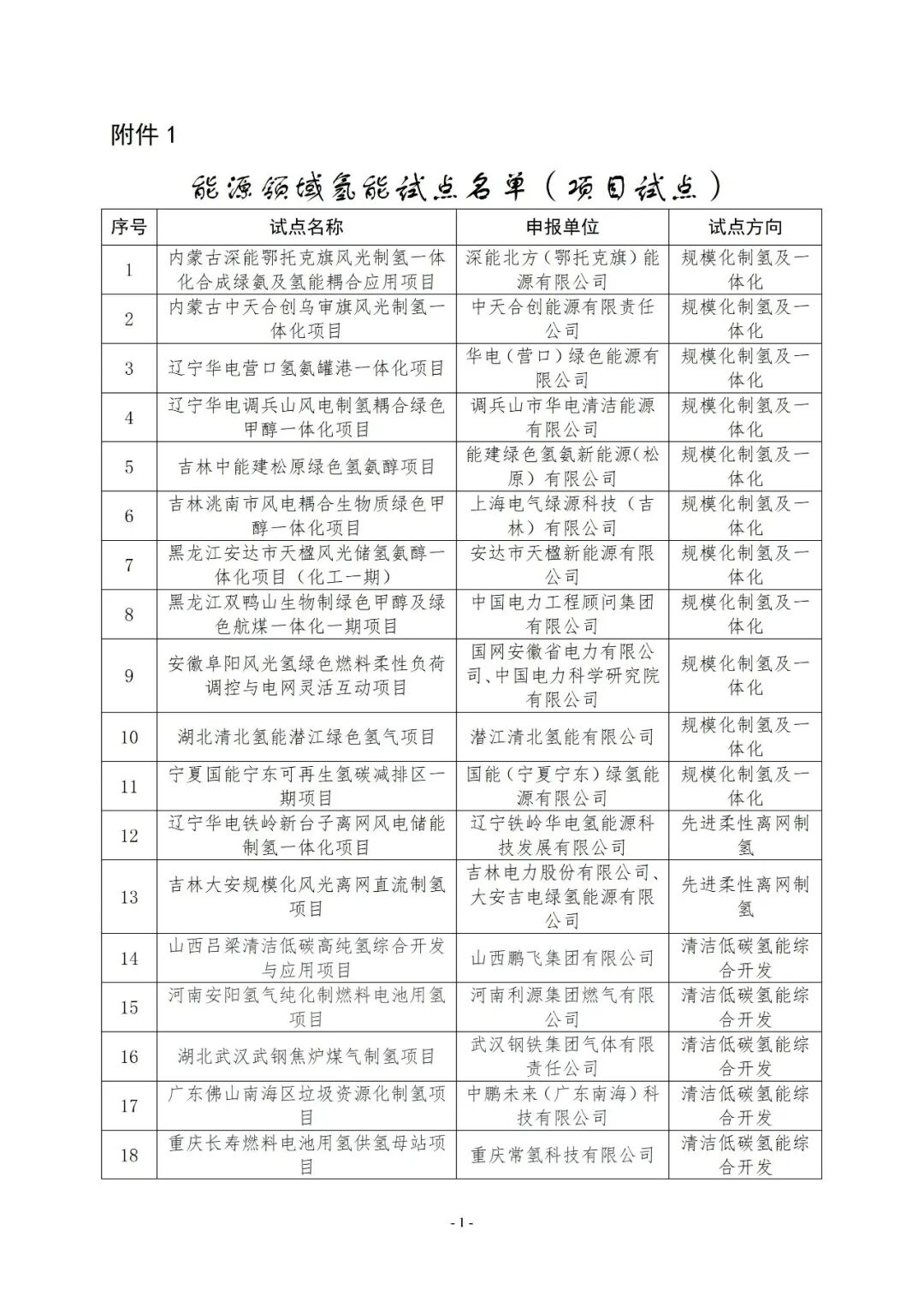 10月16日,國家能源局綜合司關于公示能源領域氫能試點(第一批)的通知。