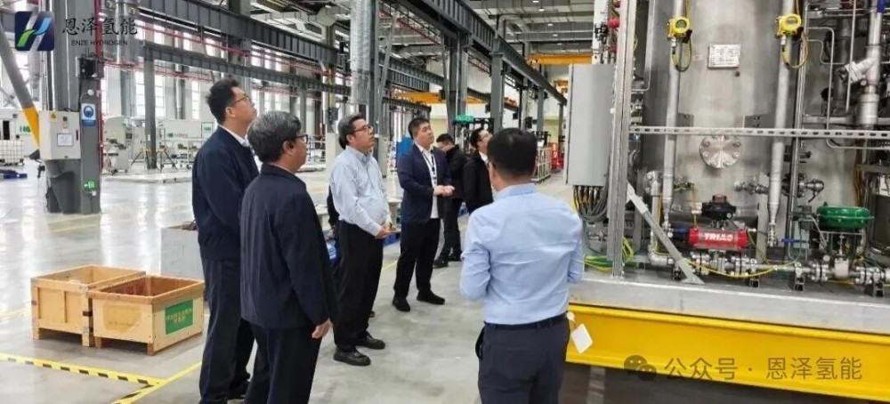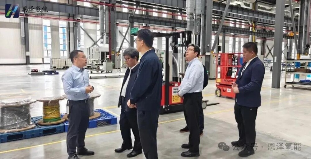 王董事長一行進入恩澤氫能智能制造基地,實地走訪參觀氫能裝備精密加工車間、系統集成中心和研發測試平臺。