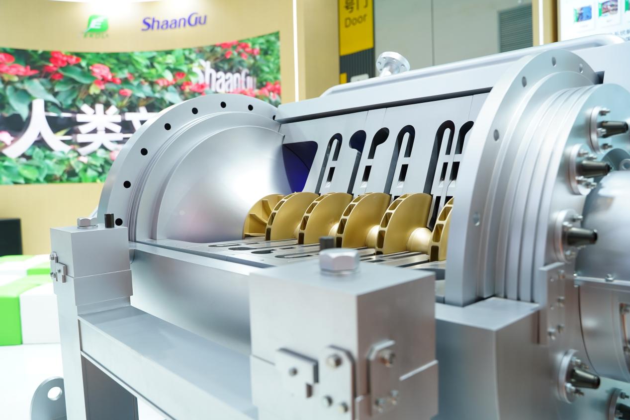 第八屆中國國際進口博覽會技術裝備展區,“為零碳未來提供動力”的標語格外醒目。陜西鼓風機(集團)有限公司旗下捷克EKOL公司(以下簡稱“陜鼓EKOL”)展臺前,汽電雙驅十萬等級空分機組和高端油氣離心壓縮機模型吸引中外客商駐足打卡。