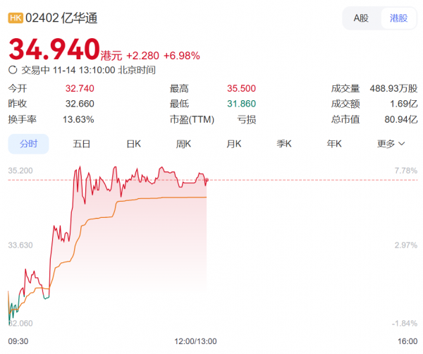 2025年11月14日,億華通港股(02402.HK)今日股價表現亮眼,一度漲超7%,截至午盤發稿時漲幅達6.797%,報34.88港元,成交額1.676億港元。億華通A股漲超8%。這波上漲行情直接受到公司在2025東京車展(又稱日本移動出行展)上技術突破的推動。