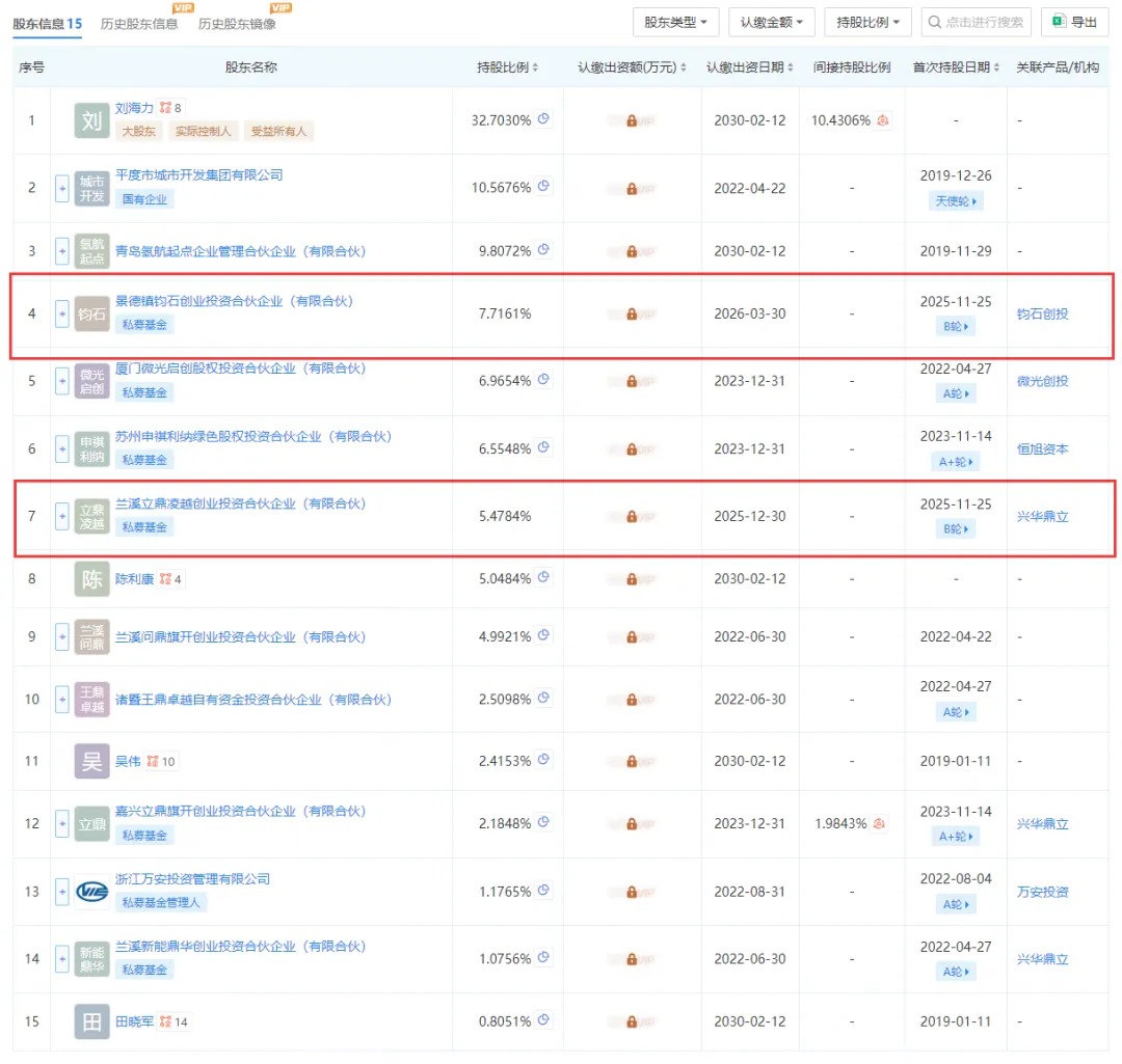 經(jīng)過此次融資后,興華鼎立將持有氫航科技5.4784%股份,鈞石創(chuàng)投將持有7.7161%股份。