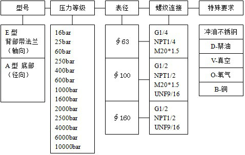 E2500-100-G1/2-1.6指標盤壓力為2500bar,表徑100mm,精度為1.6,接頭為G1/2的背部帶法蘭的不銹鋼殼體壓力表。