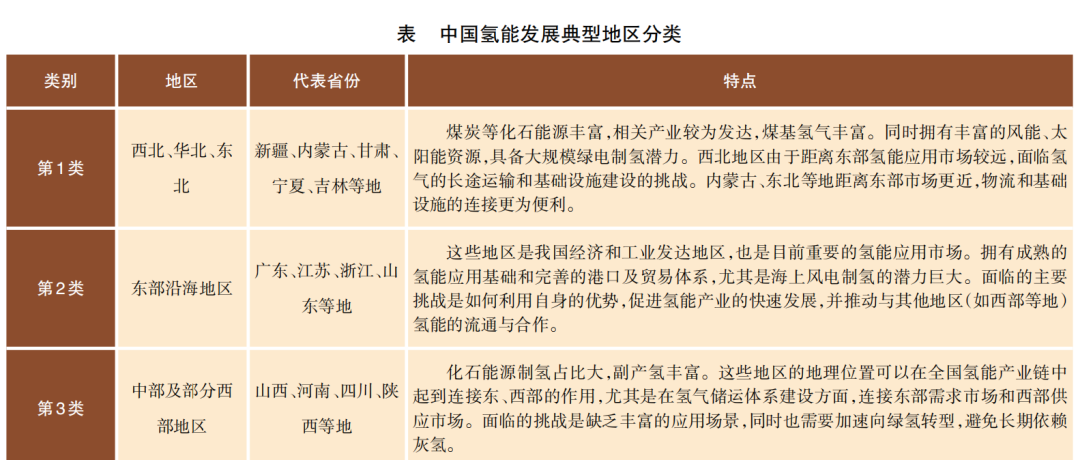 為分析方便,本文根據各地資源稟賦、產業基礎、市場需求等因素,將目前氫能發展的典型地區分為三大類(見表)。