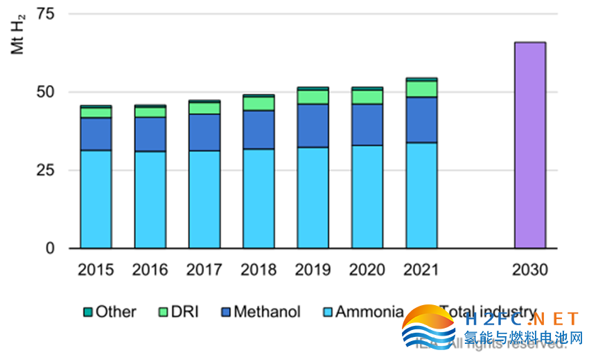 全球9400萬噸氫氣中有超過5000萬噸用于工業原料或還原劑,而合成氨是其中最大的來源,超過了3000萬噸,甲醇需求大約1500萬噸。