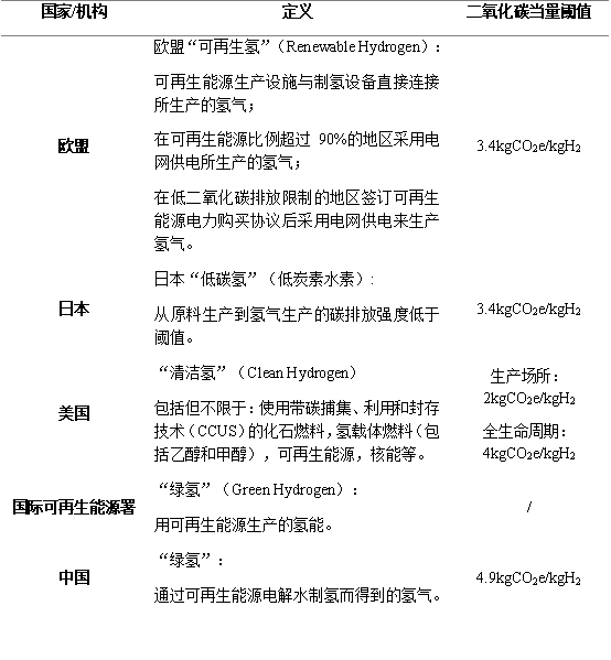 2020年12月29日,中國氫能聯盟提出《低碳氫、清潔氫與可再生能源氫的標準與評價》,當中指出在單位氫氣碳排放量方面,低碳氫的閾值為14.51千克二氧化碳當量/千克氫,清潔氫和可再生氫的閾值為4.9千克二氧化碳當量/千克氫,同時可再生氫要求其制氫能源為可再生能源。